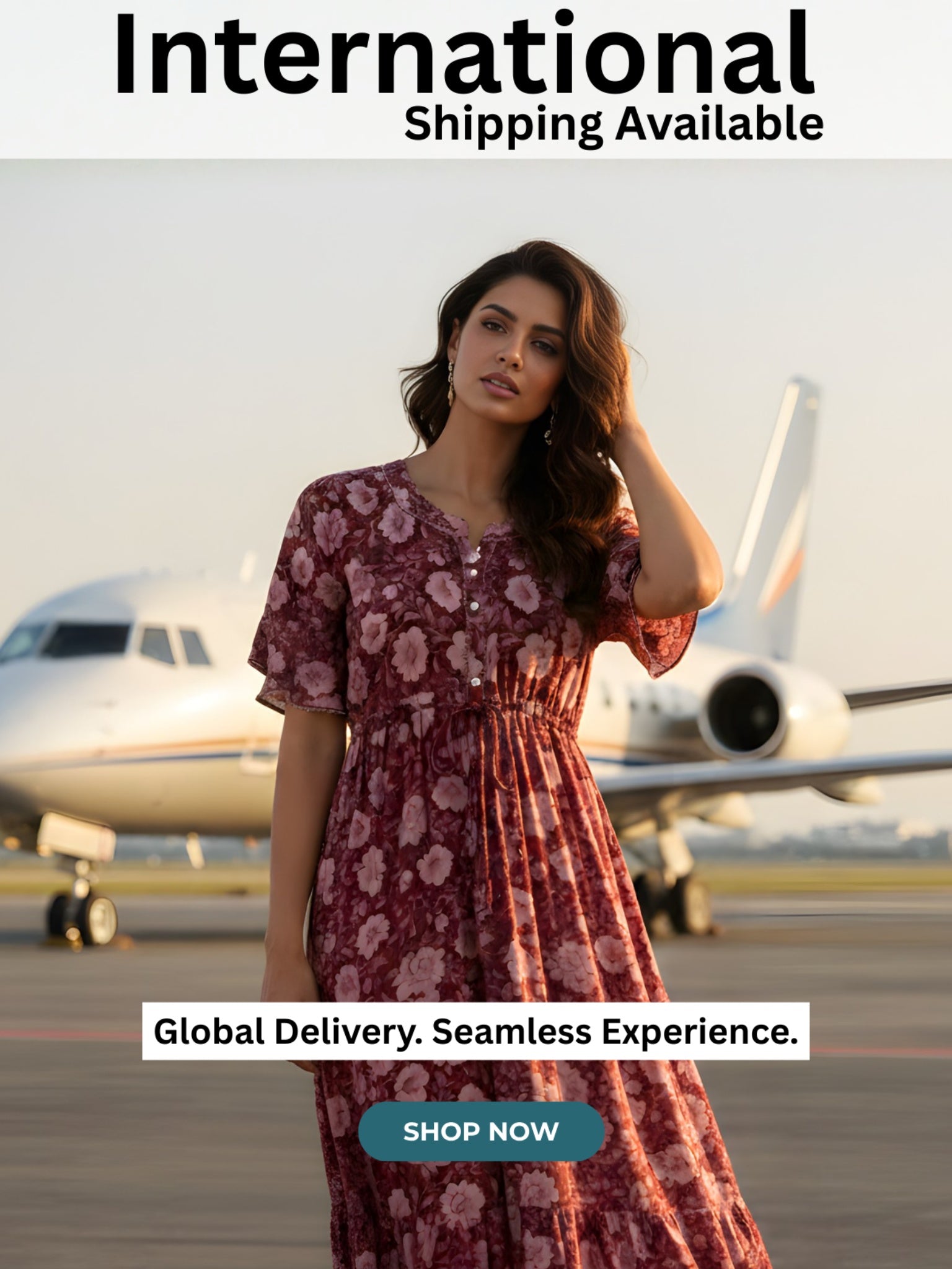 Fit: A-line maxi silhouette that flatters all body types with smooth flow.