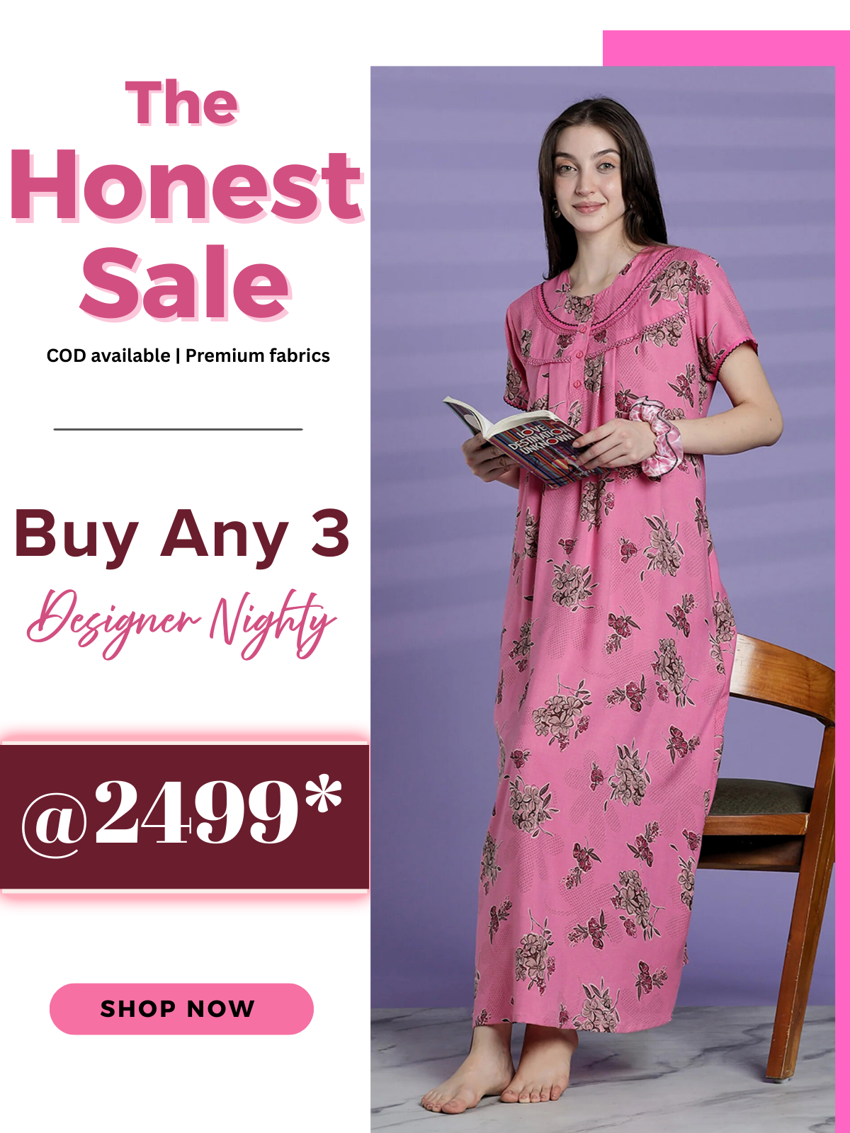 Delicate, dreamy, and divine — the Powder Pink Satin Nightdress brings an aura of feminine grace to your nightly unwind. The silky satin fabric glows with a soft blush sheen, while dainty floral prints add a touch of poetic charm. Designed for those who adore light pastel elegance, it’s an instant mood-uplifter after a long day.