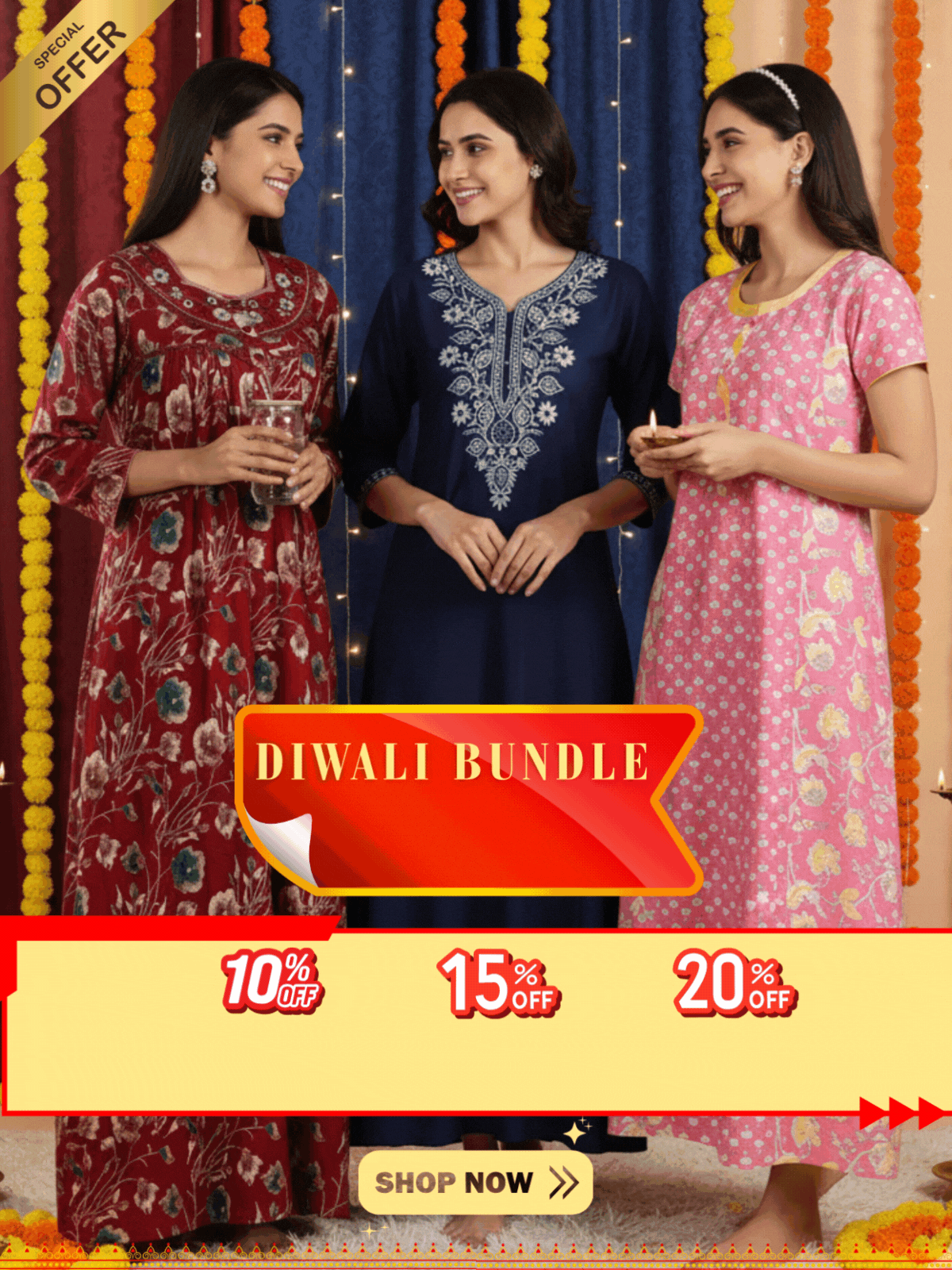 Designed with practical details like a side pocket and durable fabric, this piece is perfect for women who value both comfort and style in their nightwear. Whether you’re relaxing at home or looking for a nightdress with a regal touch, this embroidered design makes every evening feel special.