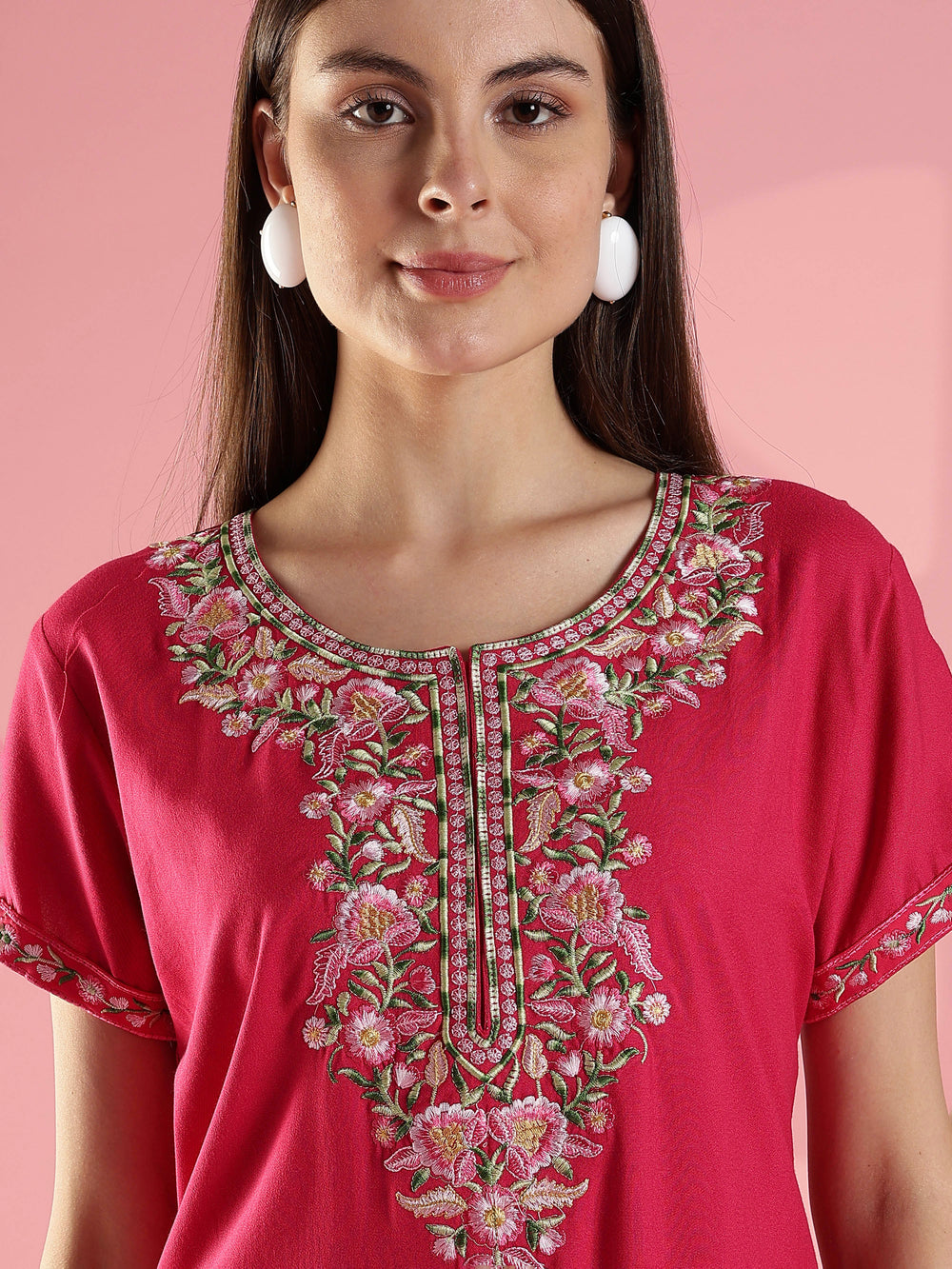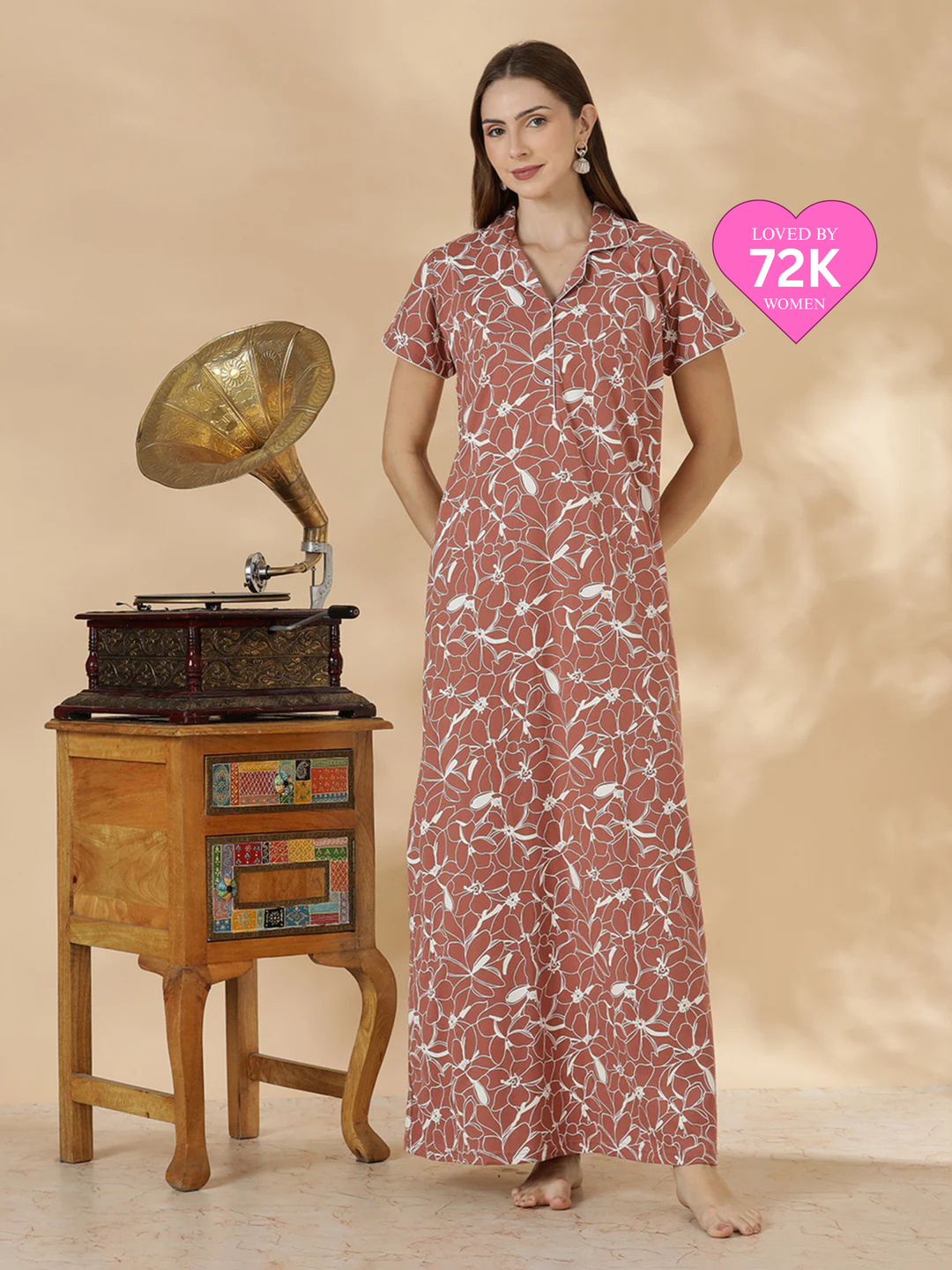 An A-line nighty is a type of night dress designed with a fitted top that gradually widens towards the hem, forming a gentle “A” shape. This timeless cut is known for being universally flattering, as it skims over the body without clinging, giving you a graceful look while allowing unrestricted movement. The extra room at the bottom makes it one of the most comfortable styles of nighty for women, perfect for long hours of wear. Whether you’re relaxing on a weekend morning, winding down after a busy day, or getting ready for bed, an A-line nighty offers the right balance of comfort and elegance. Available in fabrics like breathable pure cotton, soft rayon, cozy alpine, and luxurious satin, this silhouette adapts easily to different seasons and personal styles. From simple prints to intricately embroidered designs, the A-line nighty remains a favourite for those who want nightwear that feels light, looks flattering, and suits both lounging and sleeping.