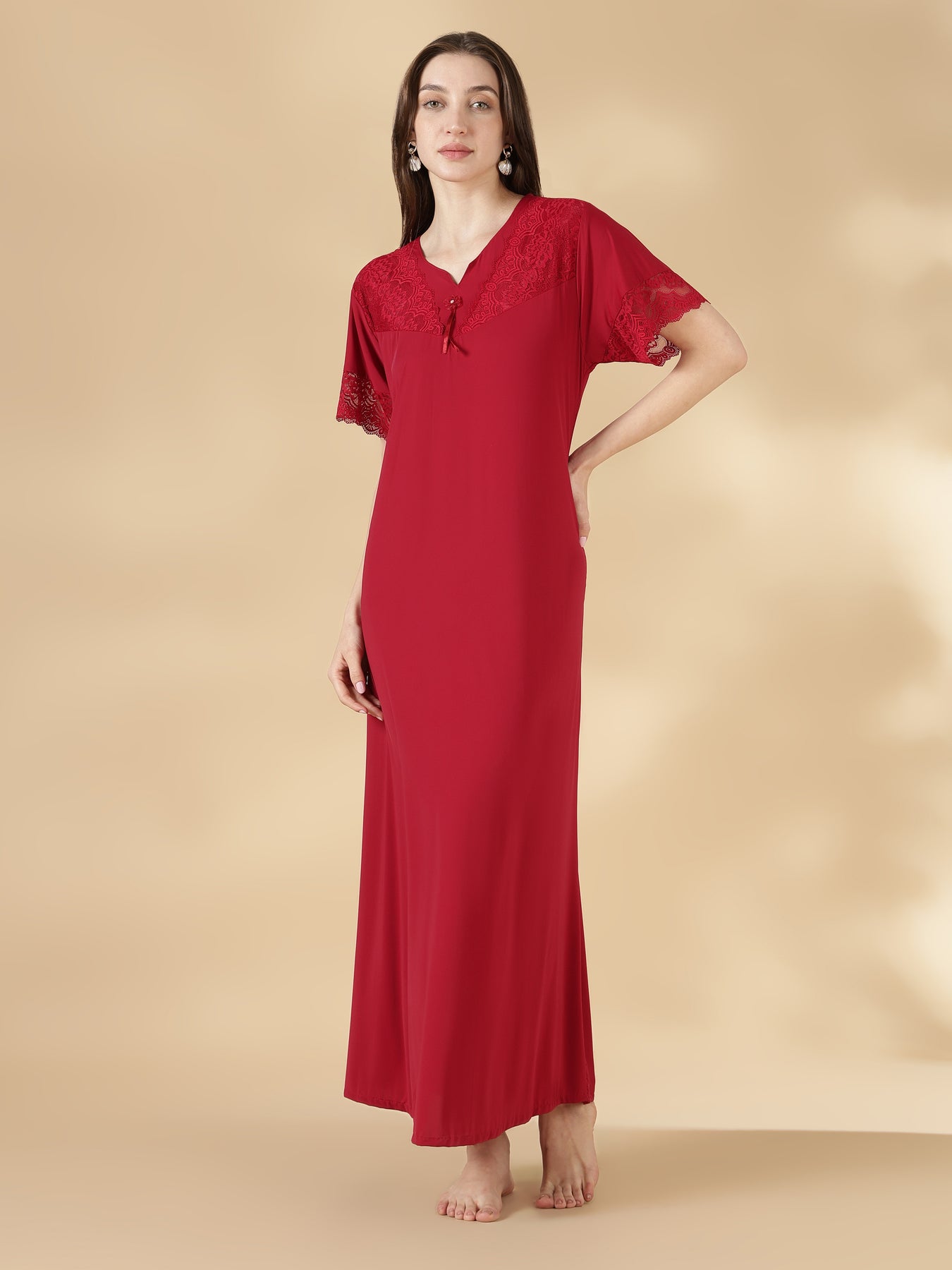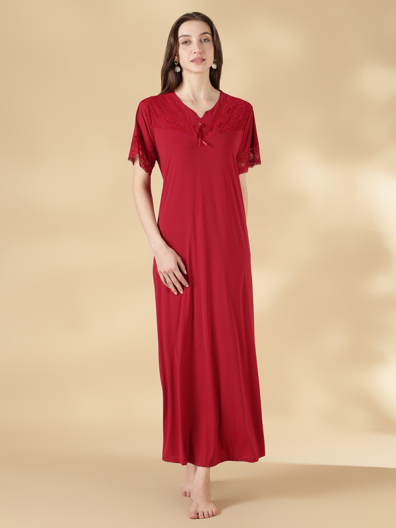 Malai A Line Nighty for Women with Lace Yoke Soft Comfort