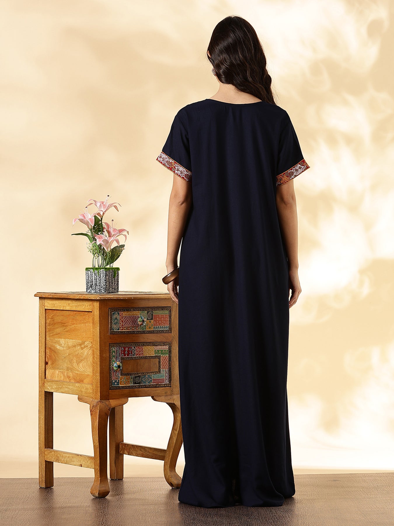 Experience comfort and grace with this Navy Blue Alpine Embroidered Nightdress.