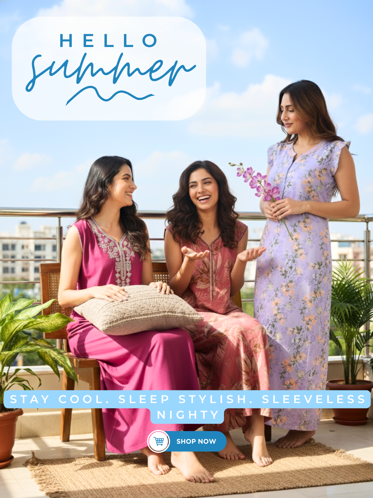 From floral prints to tropical patterns, from soft rayon to pure cotton sleeveless nighty designs, our collection has something for every preference. These pieces are easy to wash, quick to dry, and retain their softness over time.