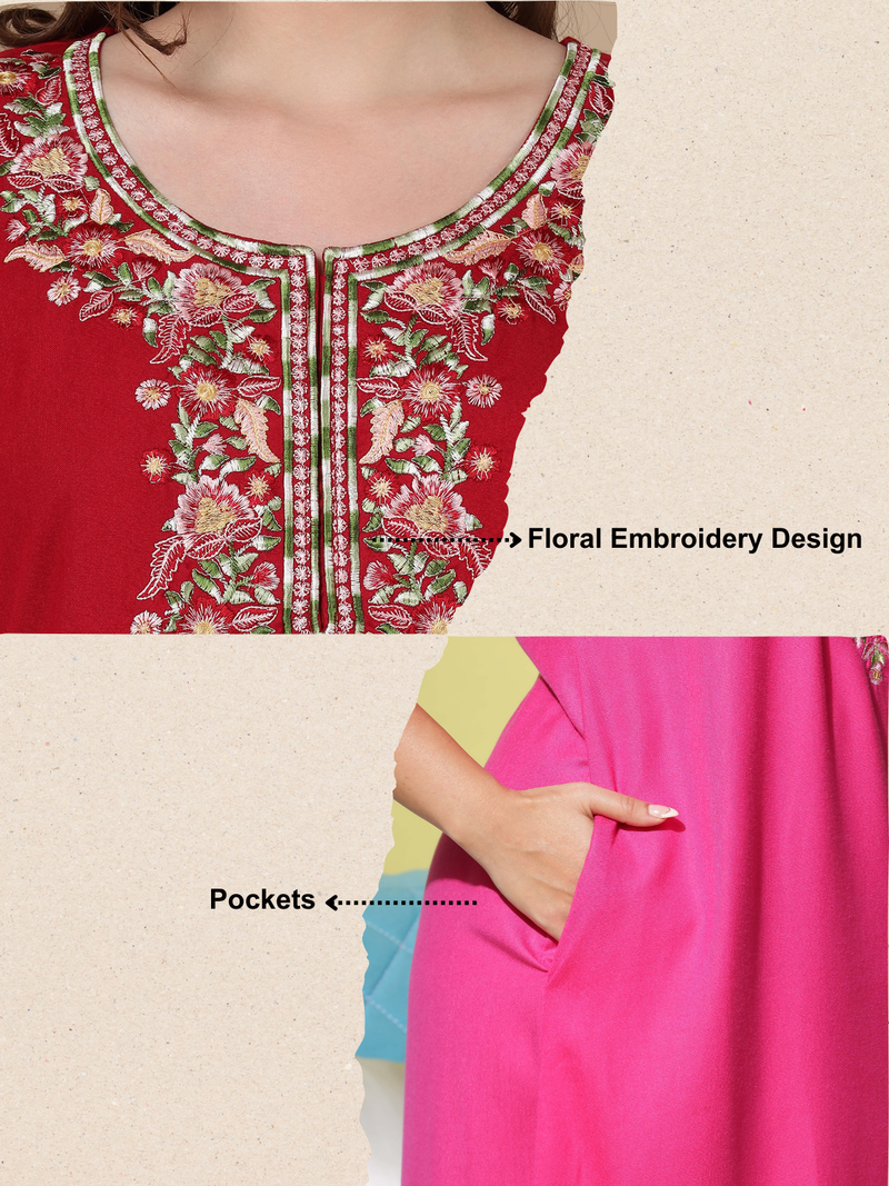 Exquisite Design: This nighty features intricate embroidery around the neckline, adding a touch of elegance to your nightly routine. The eye-catching embroidery is complemented by a solid color design, making this nighty both stylish and sophisticated.