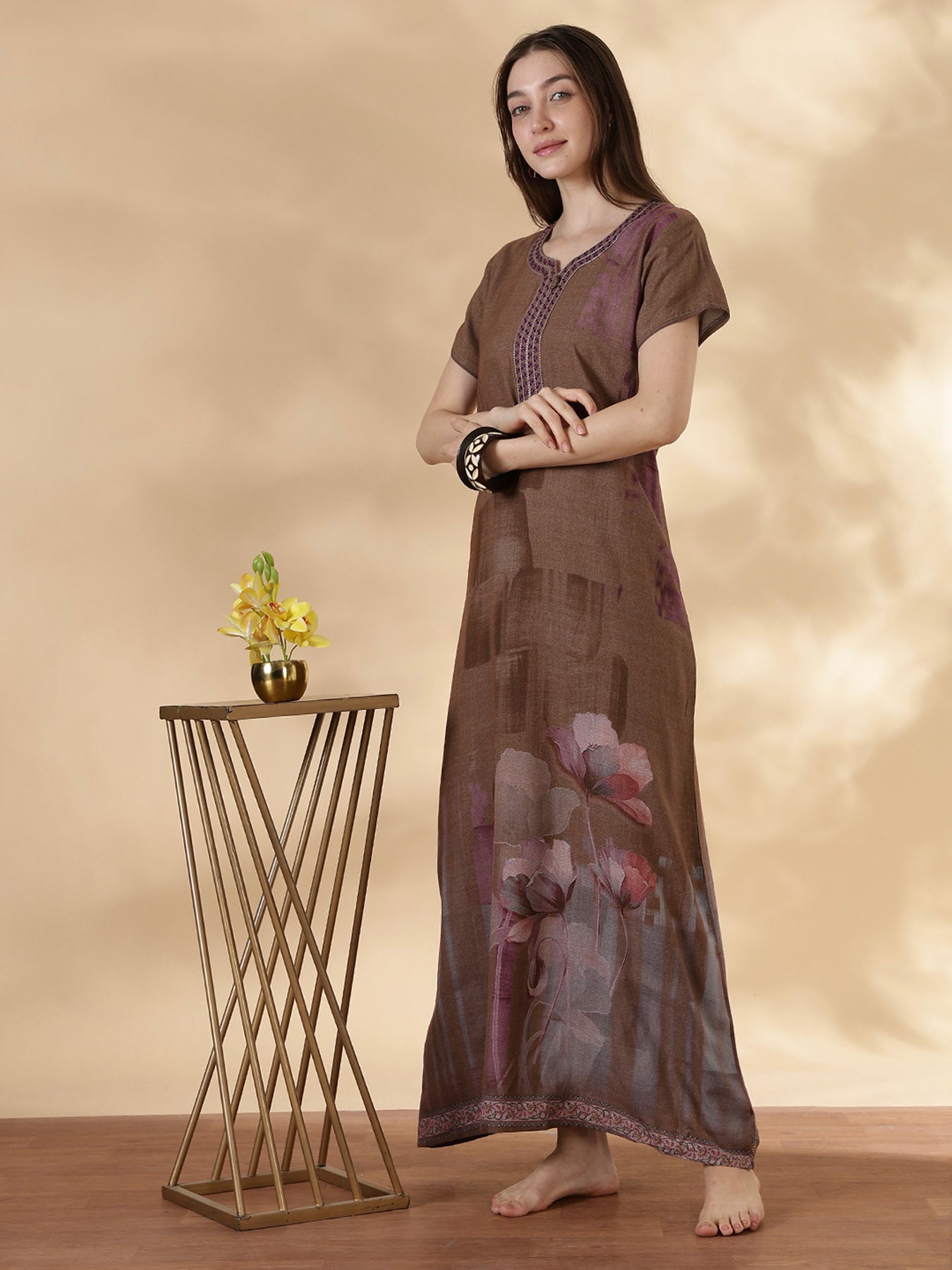 Alpine A Line Nighty for Women Floral Print Mocha