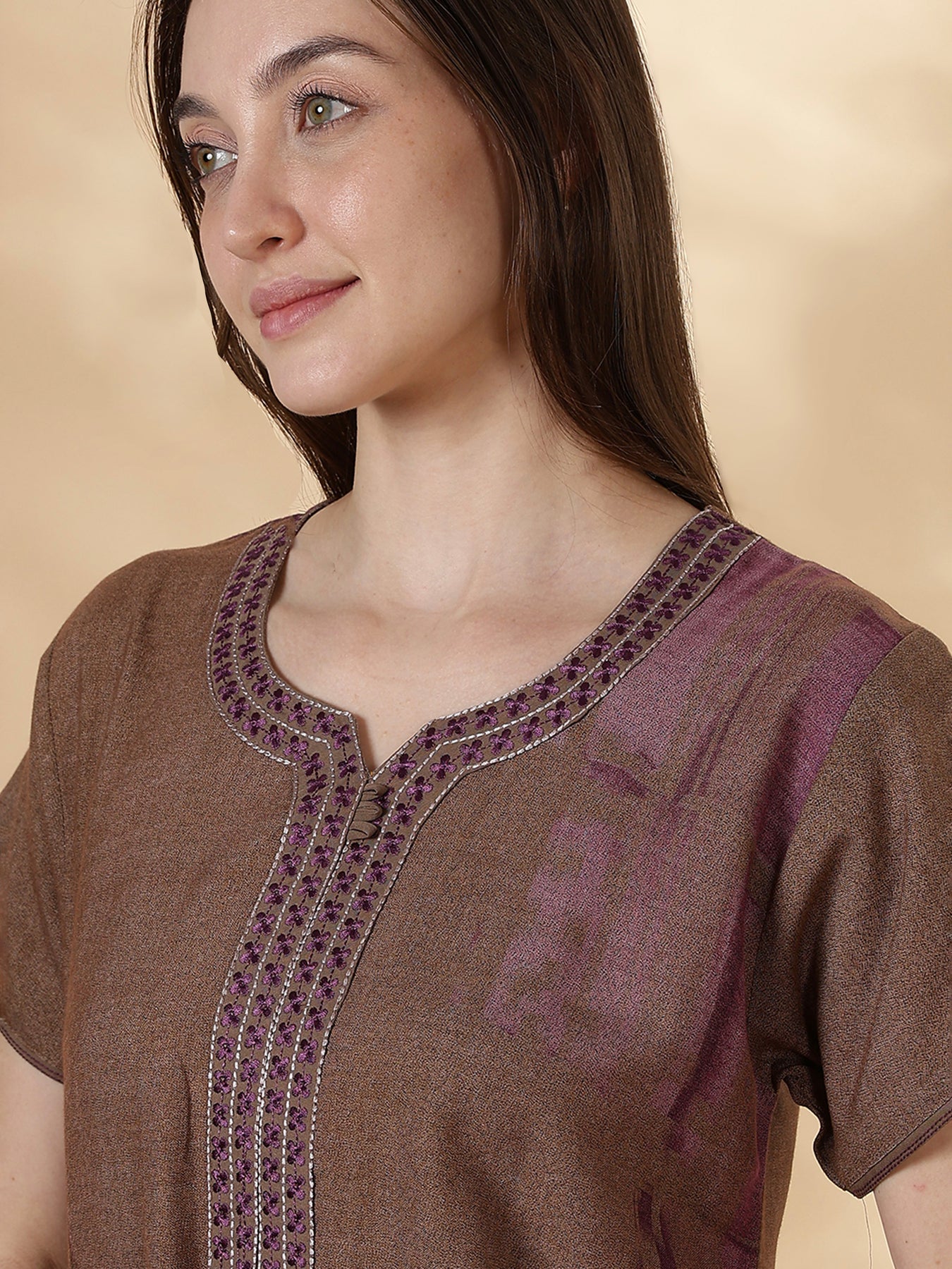 Upgrade your nightwear collection with this alpine nighty for women featuring a soothing mocha tone and delicate embroidery. Crafted for comfort and style, this nightdress blends breathable fabric with a graceful A-line silhouette.