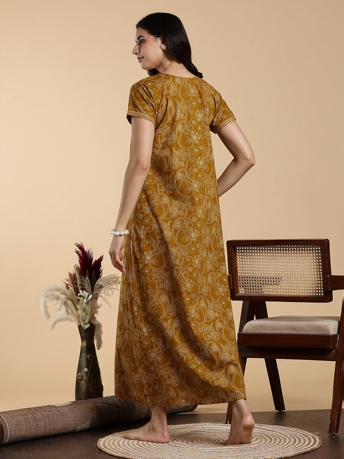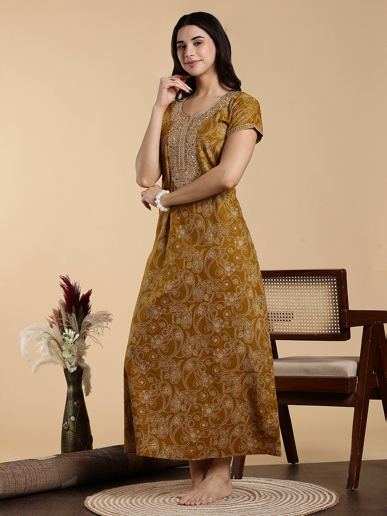 Mustard Yellow Nighty for Women – Bright Elegance Paired with Daily Comfort