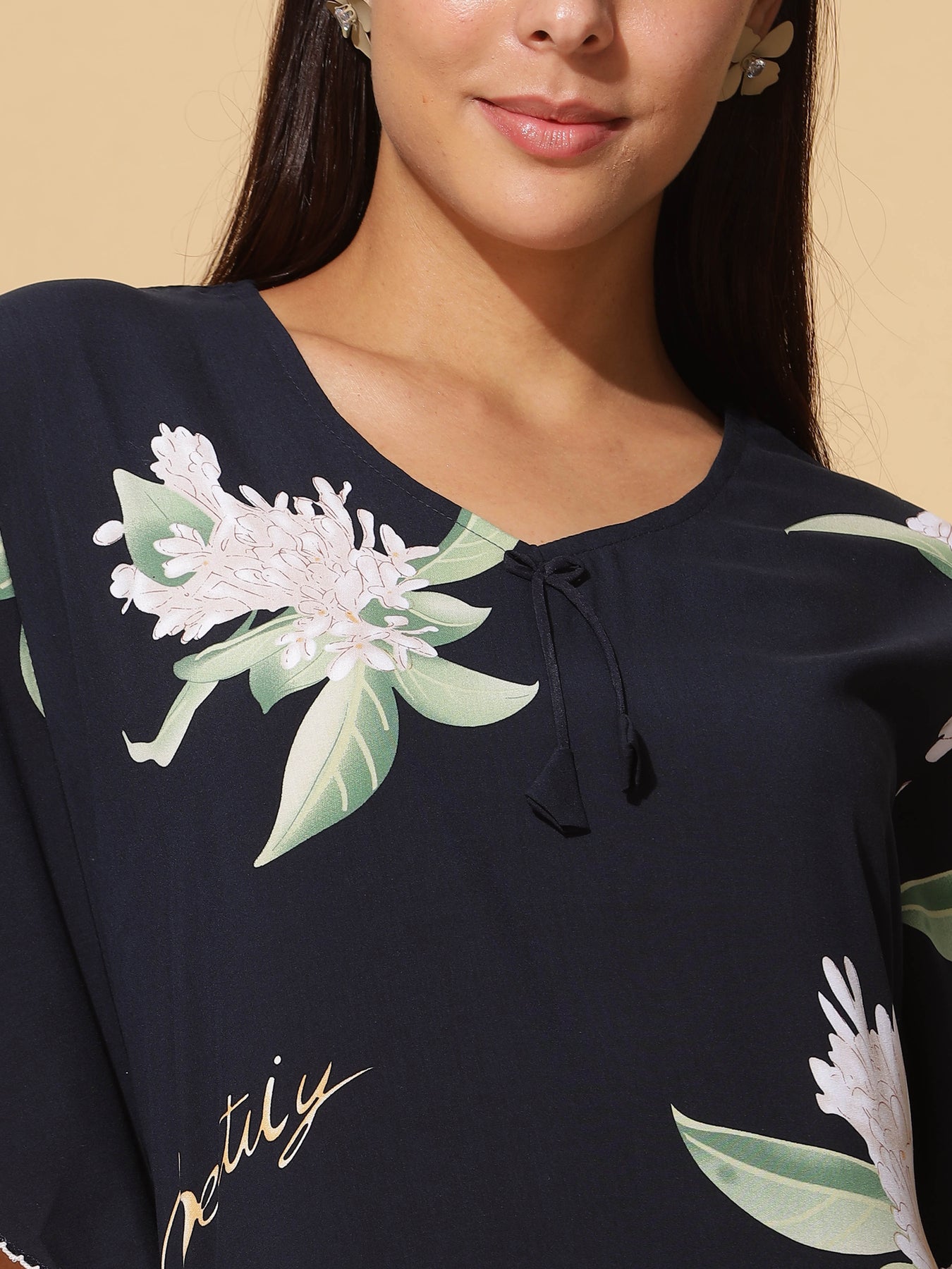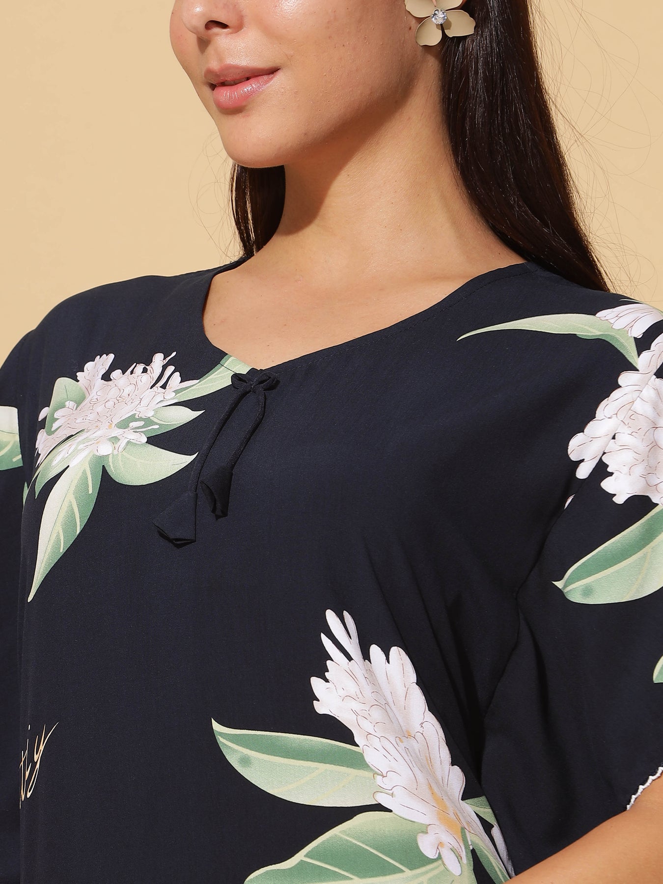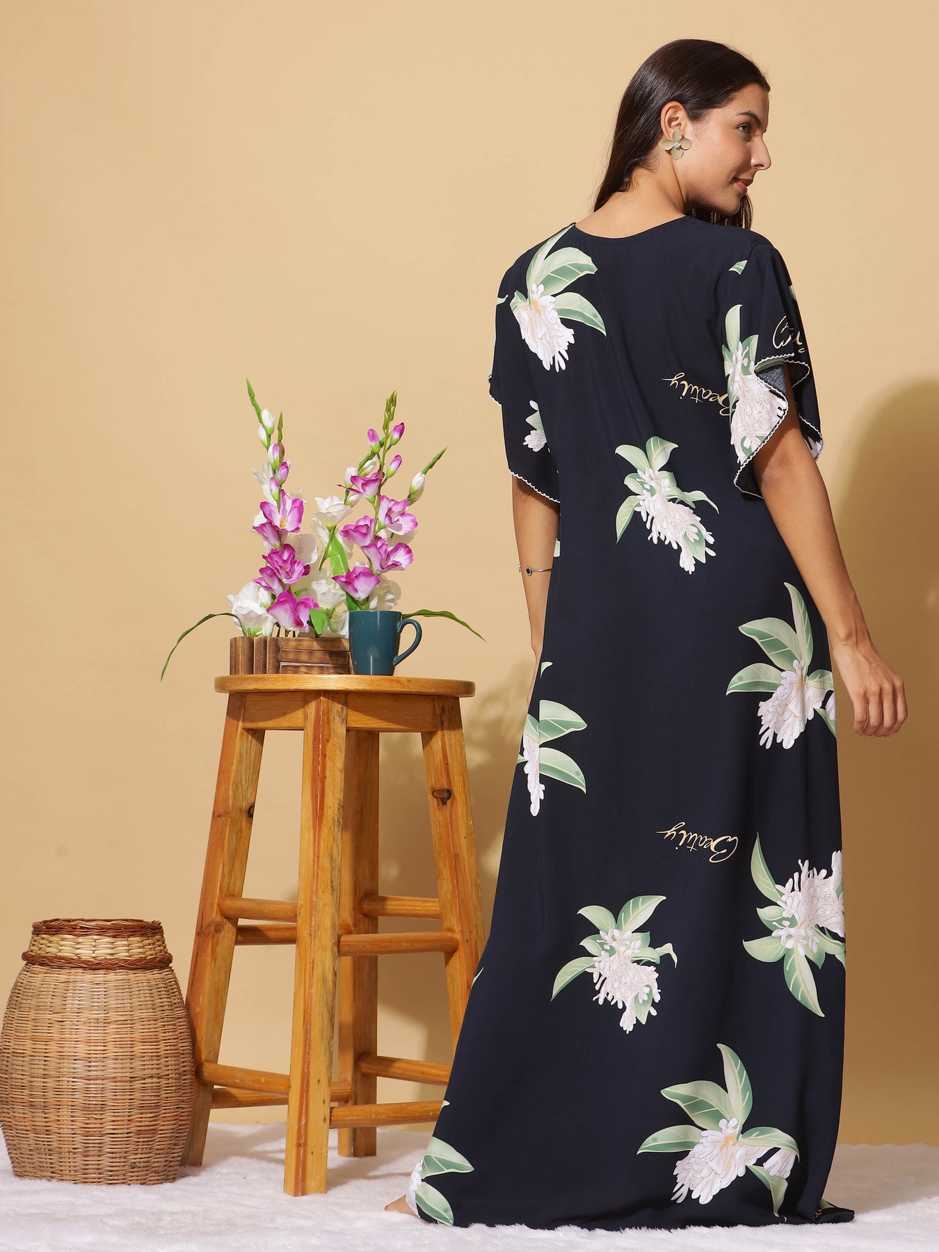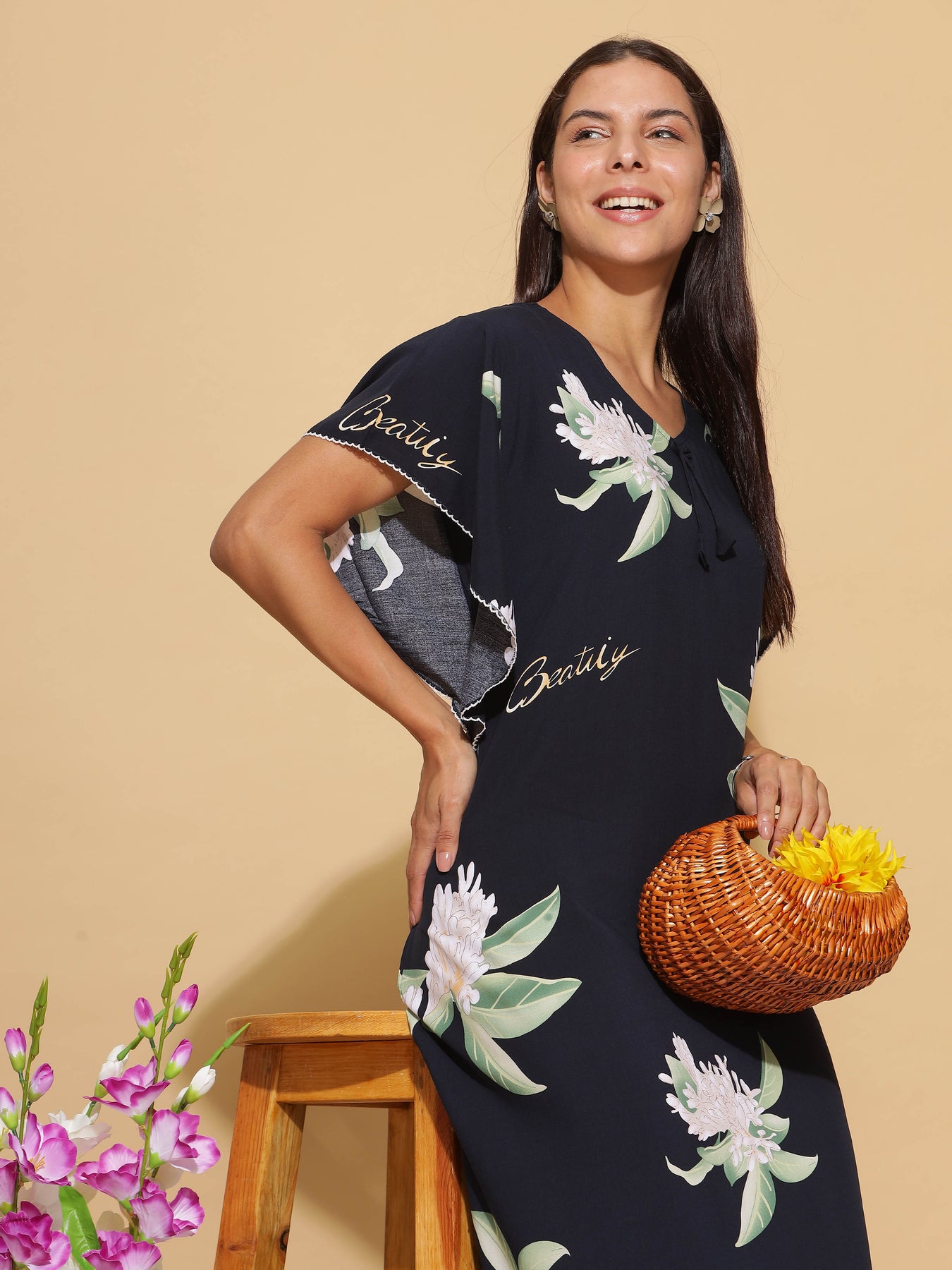 Upgrade your nightwear collection with this elegant and comfortable Rayon Designer Maxi Night Gown from 9shines Label. Designed with kaftan sleeves and a flattering A-line fit, this nightdress is crafted from premium rayon fabric that offers breathability, softness, and durability. The chic floral print adds a touch of sophistication, making it perfect for both lounging and casual wear.