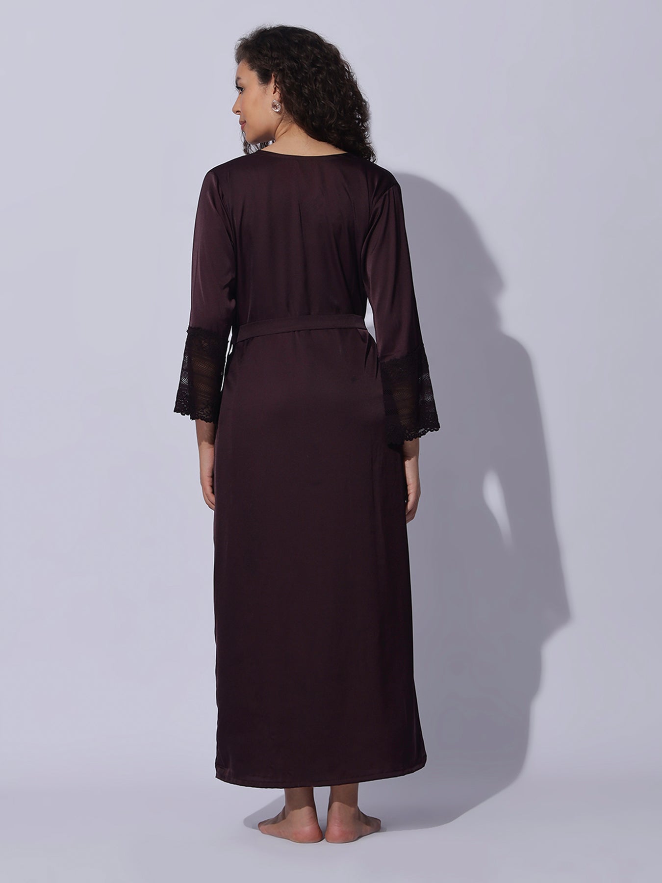 Satin long robe and night gown set in rich cocoa wine shade