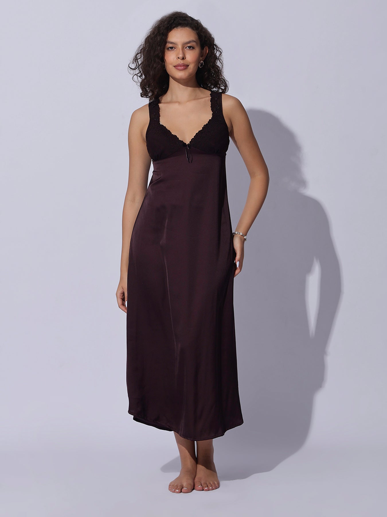 • Elegant Solid Finish: Rich cocoa wine shade for a bold yet classy nightwear look