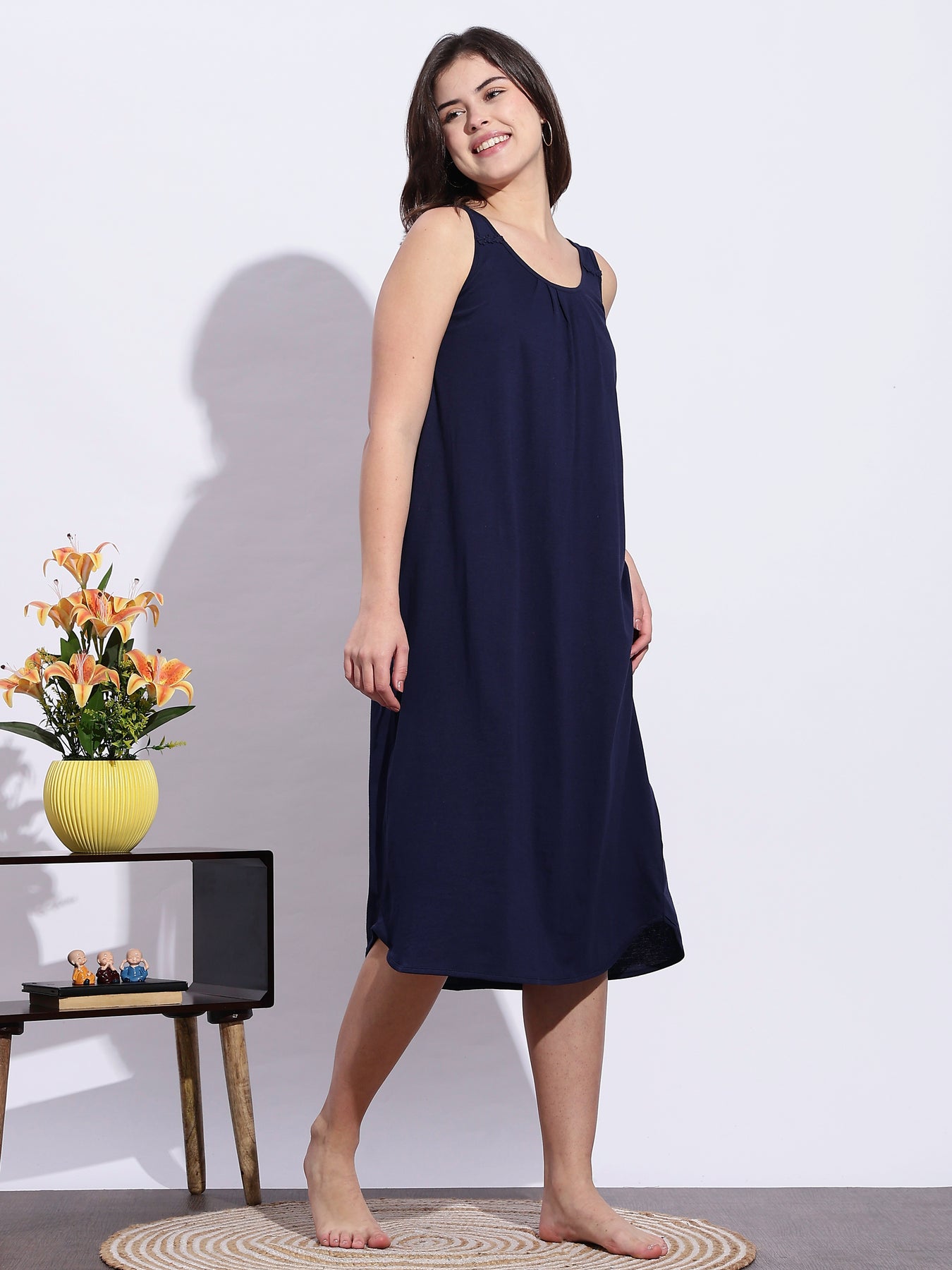 Navy Blue Sleeveless Nighty Slip for Effortless Comfort
