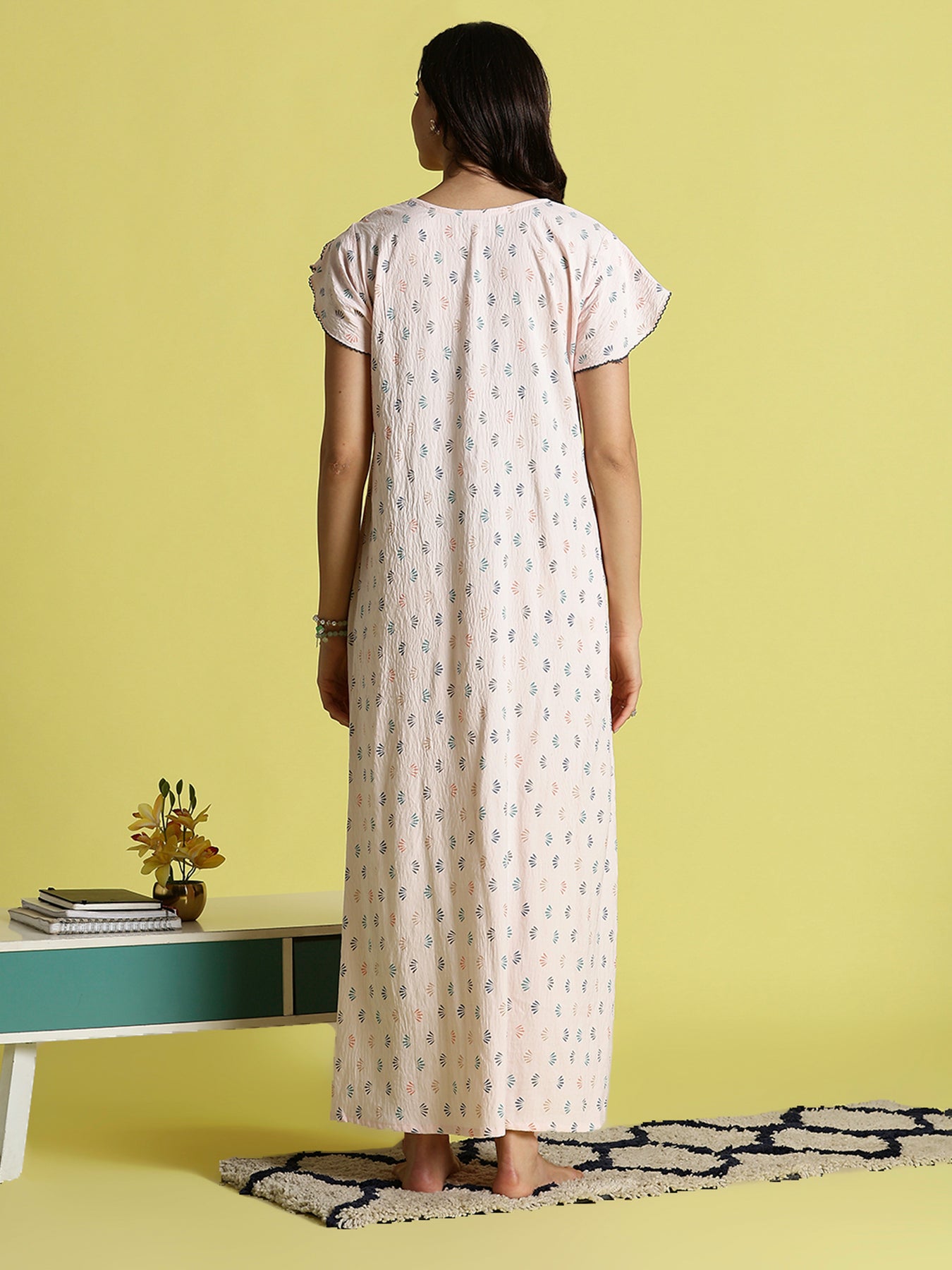 Premium Crush Cotton Designer Nighty for Women in Pastel Pink