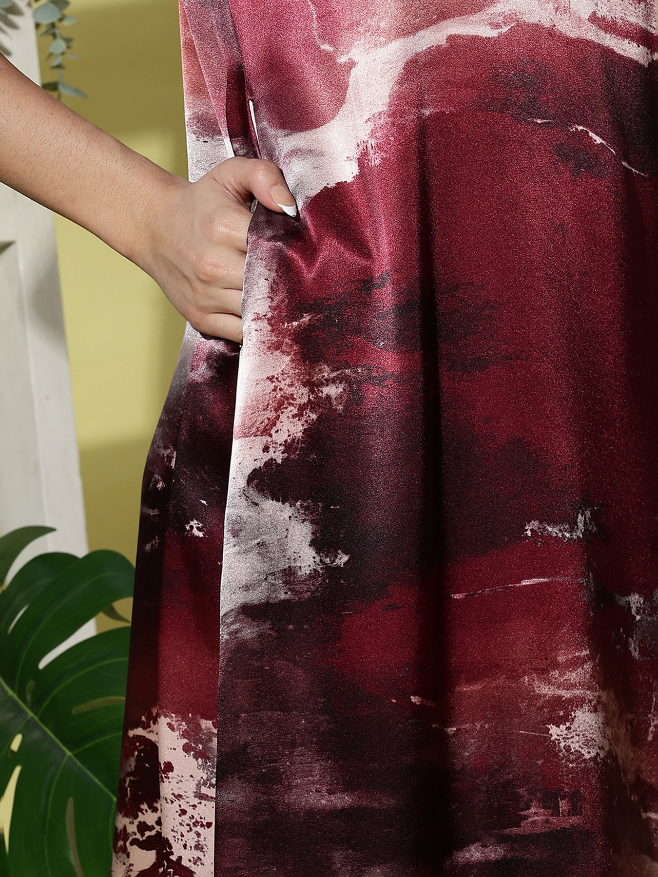Experience the allure of deep maroon tones with our Ruby Smoke Satin Designer Nighty. Designed for women who appreciate a blend of sensuality and serenity, this full-length nightdress delivers unmatched comfort and sophistication.