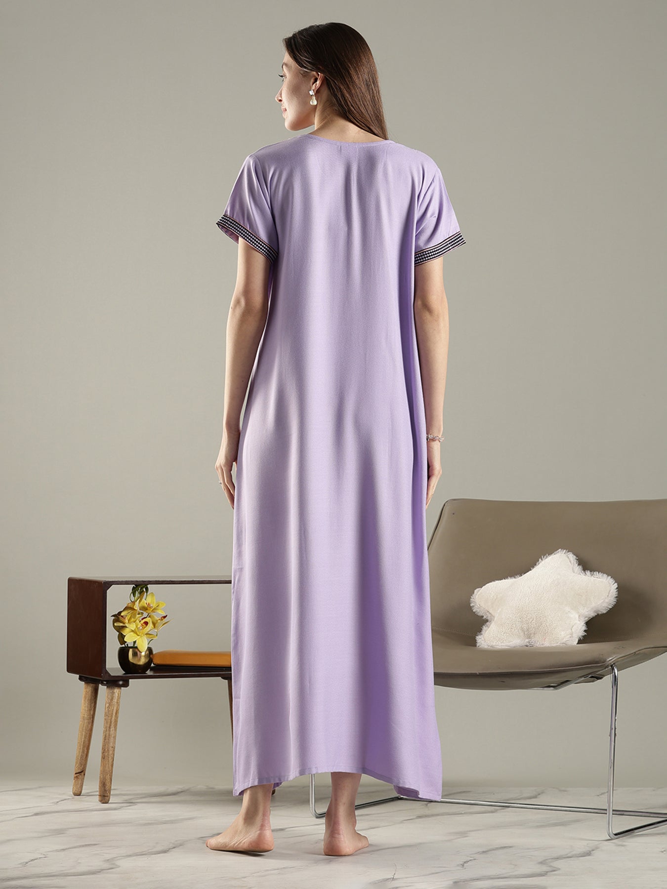 Soft, soothing, and thoughtfully designed, this Alpine Designer Nighty in Powder Lilac brings together breathable comfort and delicate ethnic detailing. Ideal for everyday wear, this night dress is perfect for unwinding after long hours or enjoying peaceful sleep.