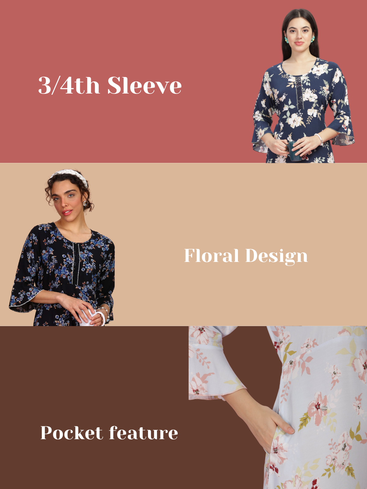 All Over Floral Print: Stylish and elegant floral design ideal for everyday wear